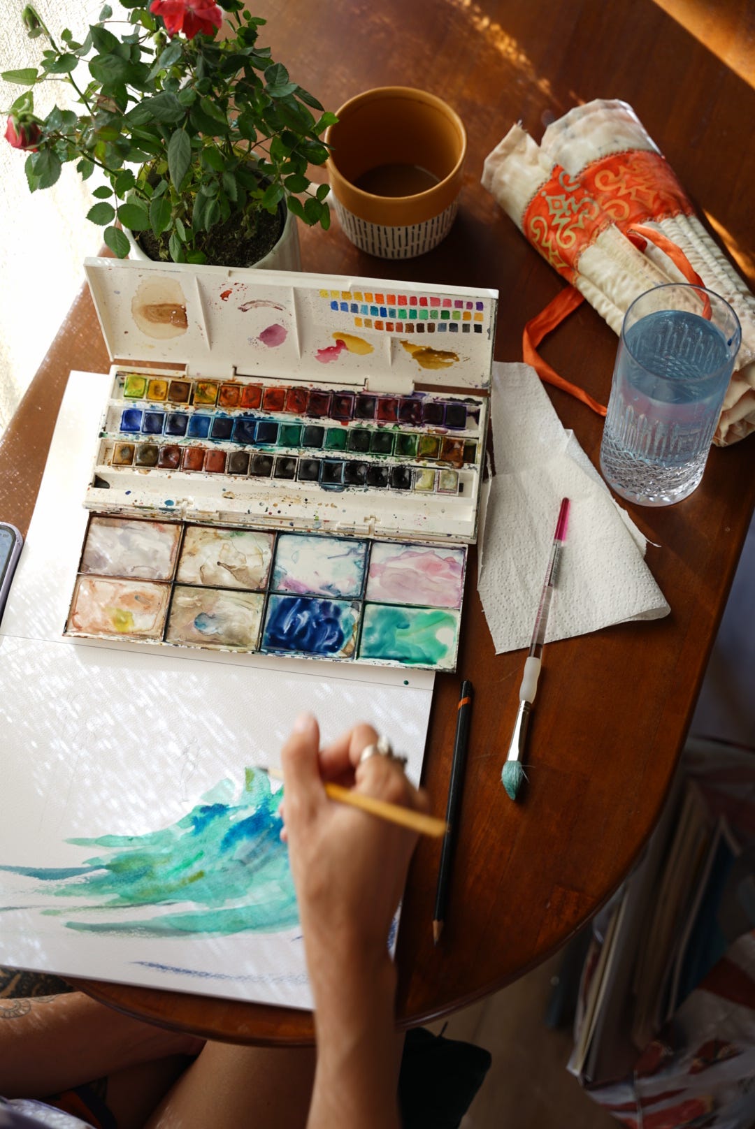 We love water and colour, so we’ve been combining the two to make art pieces. More of which will be trickling through from our hands and into our print shop.