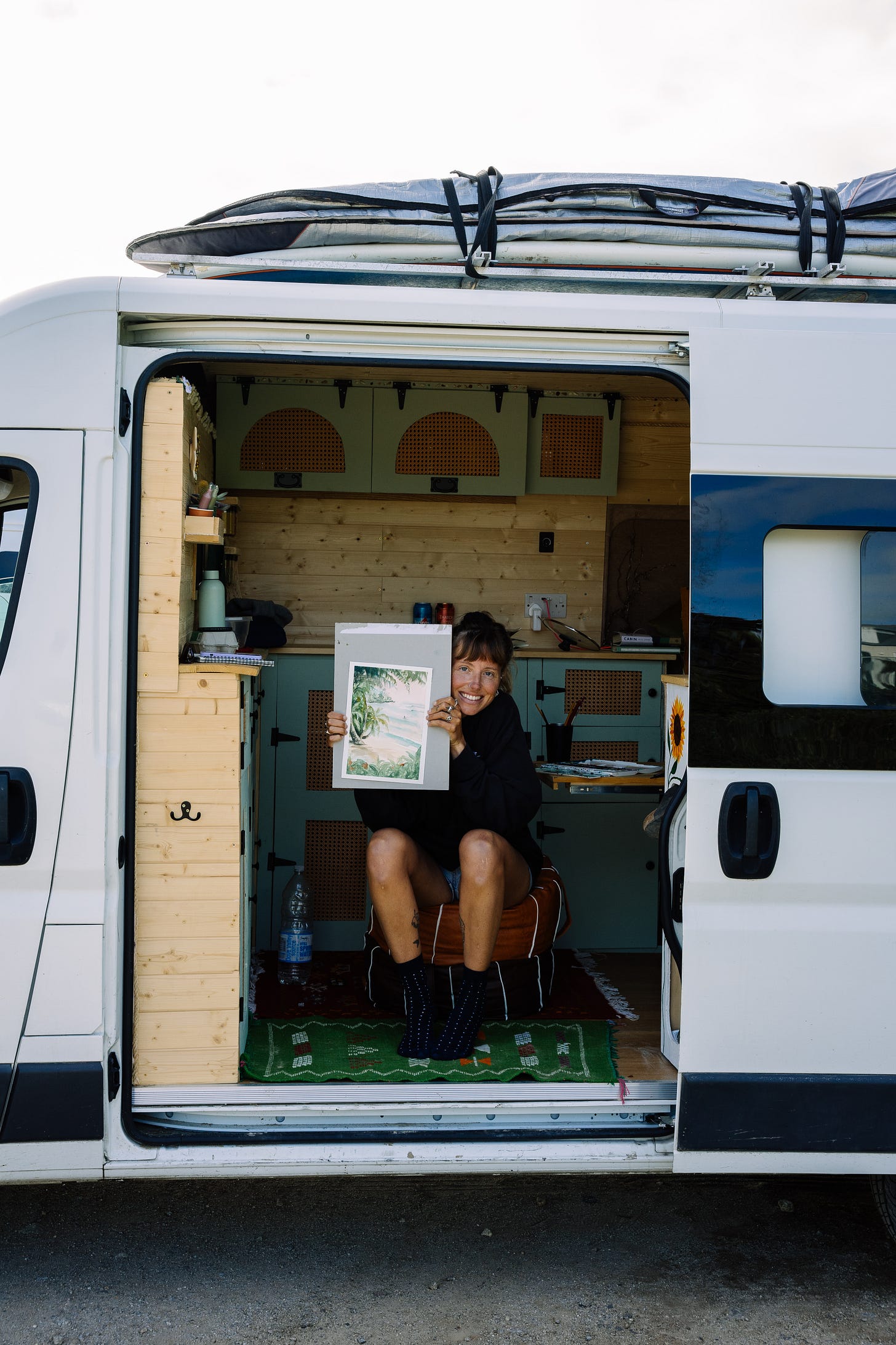 Our van doubles up as an art studio and serves as the home of creating for Tarn. Being outside a lot and having a fresh breeze roll through our van really helps enliven the zest for making.